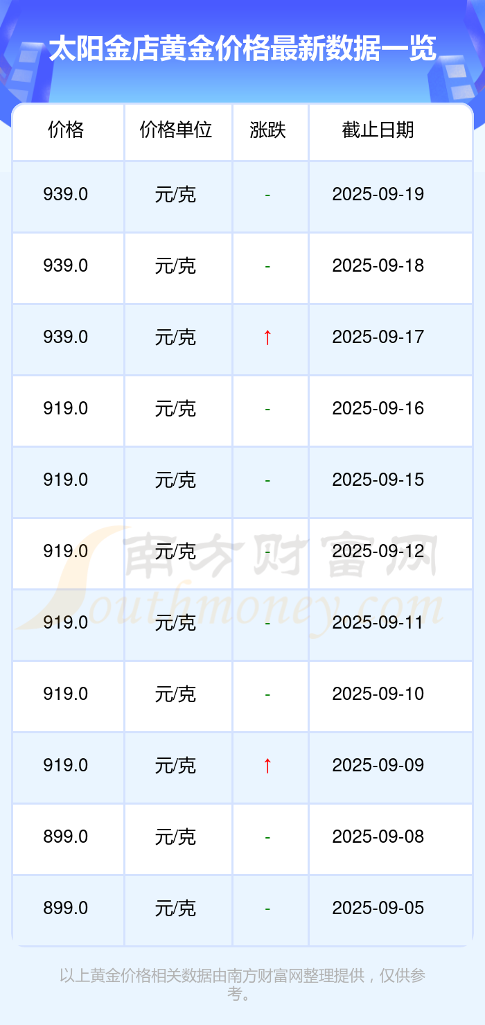 太阳金店黄金价格多少钱一克?太阳金店黄金价格今日(2025年9月20日)