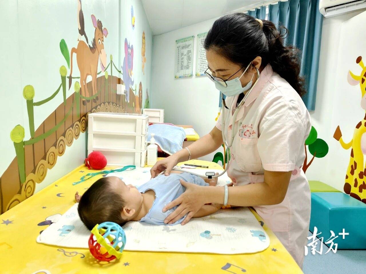 据了解,此前因场地限制,该门诊一直未能开设儿童保健室。去年年底,在清新区卫生健康局和区疾控中心的协调和大力支持下,区疾控中心特意腾出30余平方米空间,由太和镇卫生院精心打造了充满童趣的儿童保健室。室内装饰有狮子、熊猫、大象等可爱的图案,为孩子们营造了温馨愉悦的体检环境。